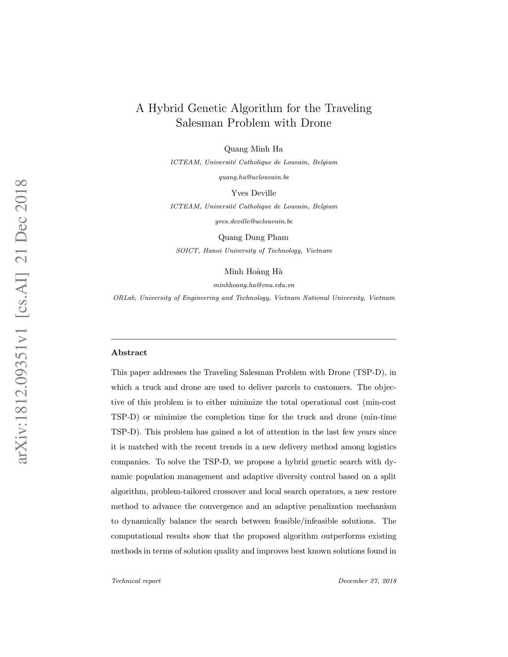 A Hybrid Genetic Algorithm for the Traveling Salesman Problem with Drone