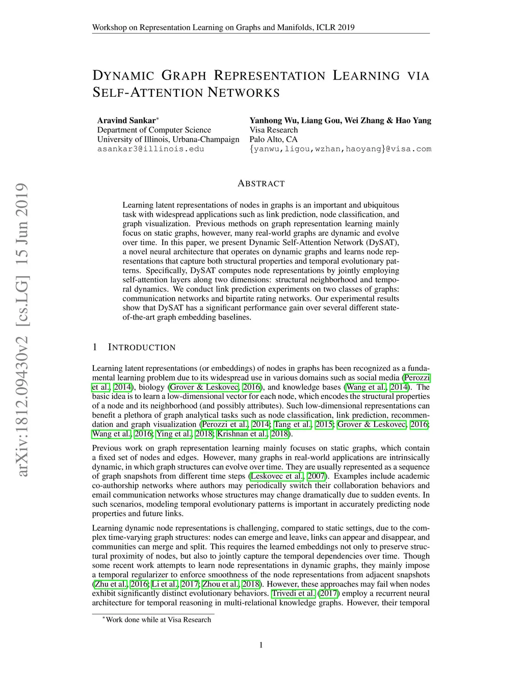 Dynamic Graph Representation Learning via Self-Attention Networks