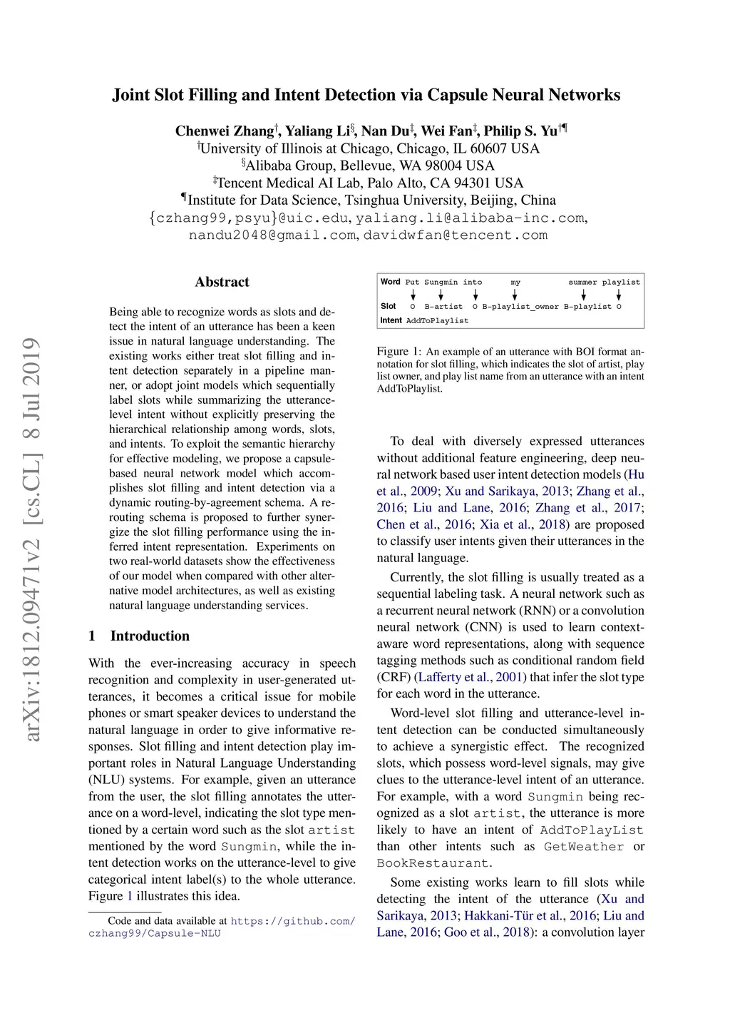 Joint Slot Filling and Intent Detection via Capsule Neural Networks