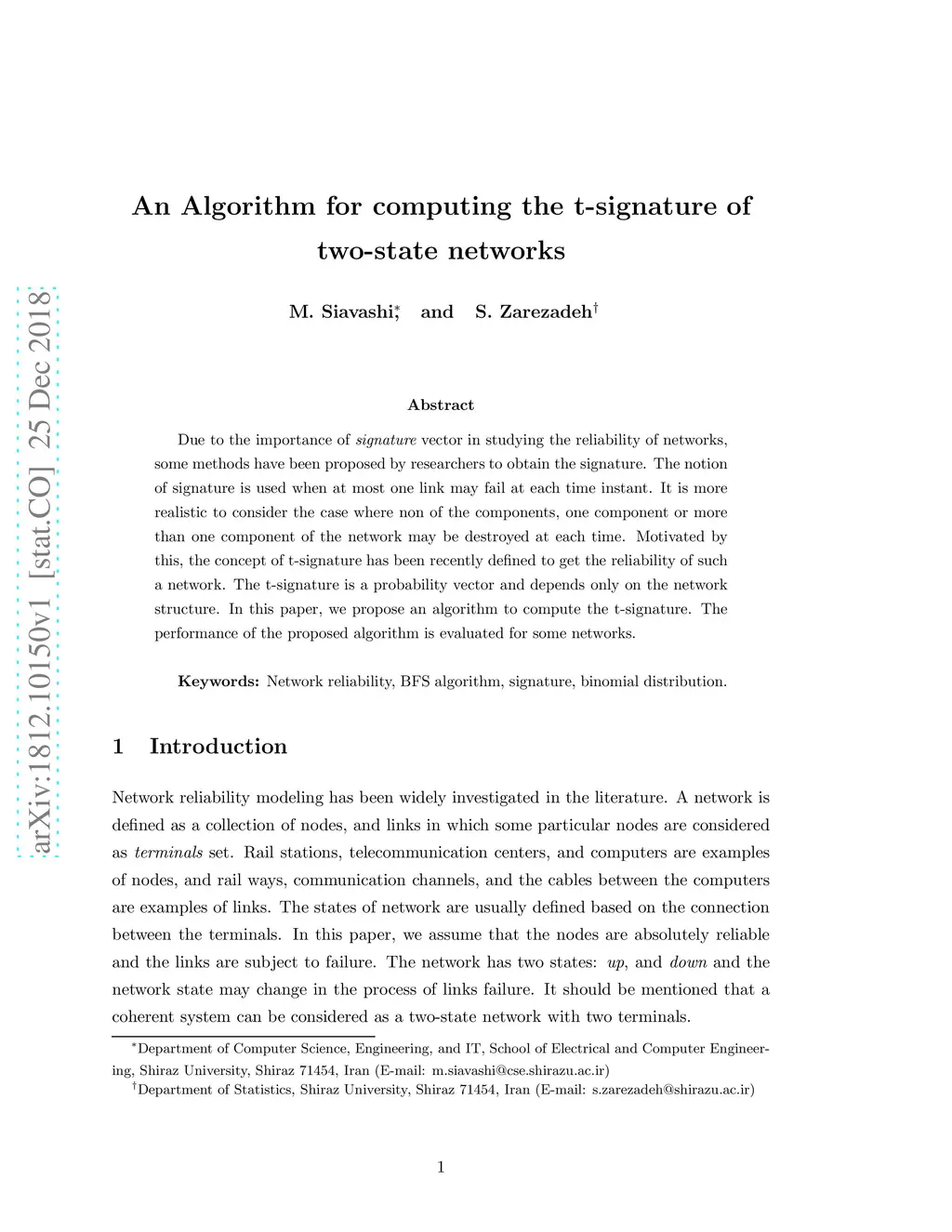 An Algorithm for computing the t-signature of two-state networks