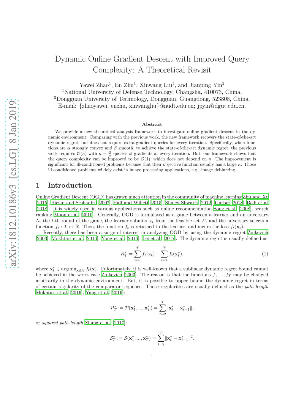 We provide a new theoretical analysis framework to investigate online gradient descent in the dynamic environment. Comparing with the previous work, the new framework recovers the state-of-the-art dynamic regret, but does not require extra gradient queries for every iteration. Specifically, when functions are strongly convex and smooth, to achieve the state-of-the-art dynamic regret, the previous work requires with queries of gradients at every iteration. But, our framework shows that the query complexity can be improved to be , which does not depend on . The improvement is significant for ill-conditioned problems because that their objective function usually has a large .