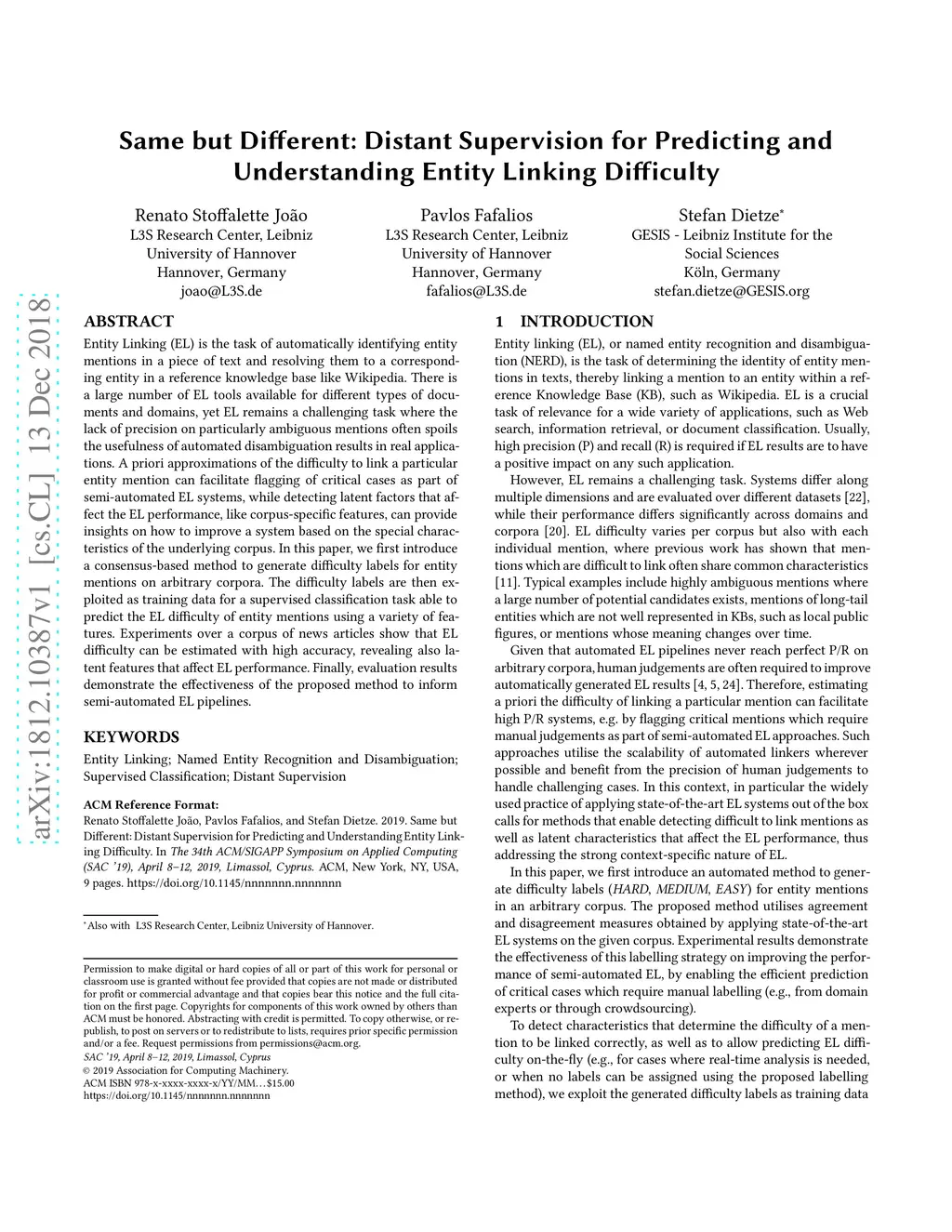 Entity Linking Difficulty