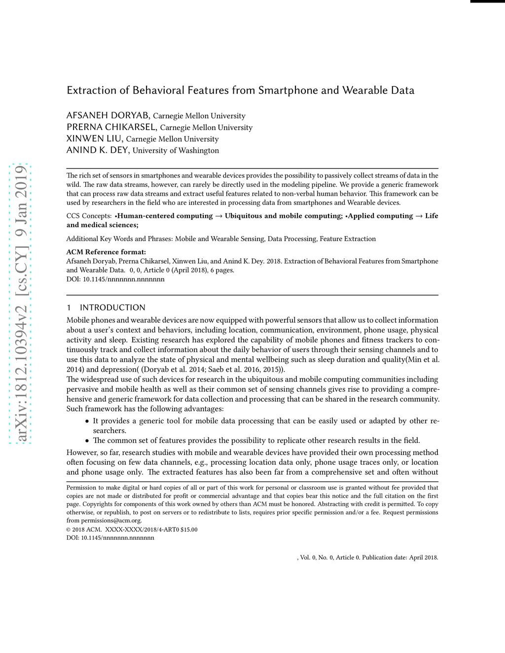 Extraction of Behavioral Features from Smartphone and Wearable Data