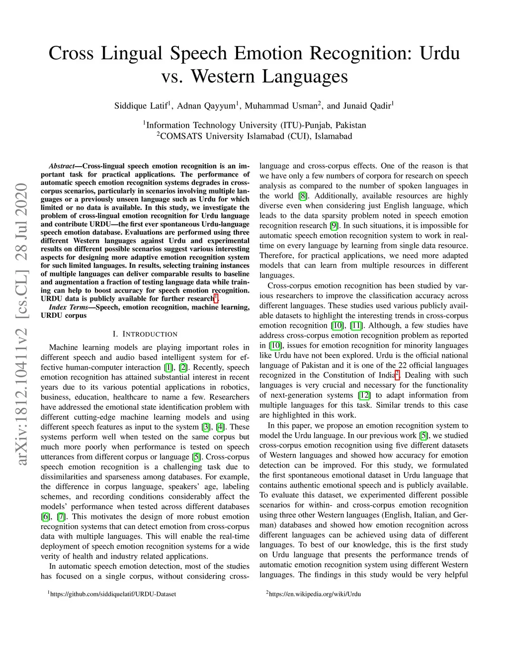 Cross Lingual Speech Emotion Recognition: Urdu vs. Western Languages