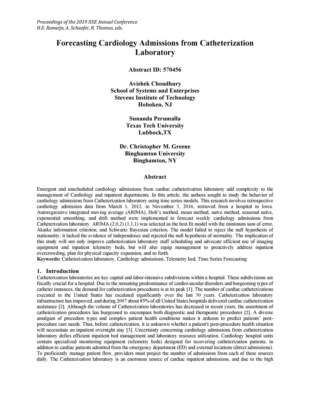 Forecasting Cardiology Admissions from Catheterization Laboratory