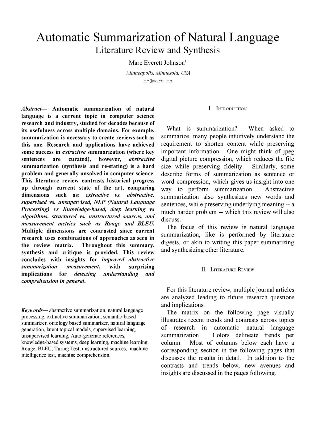 Automatic Summarization of Natural Language