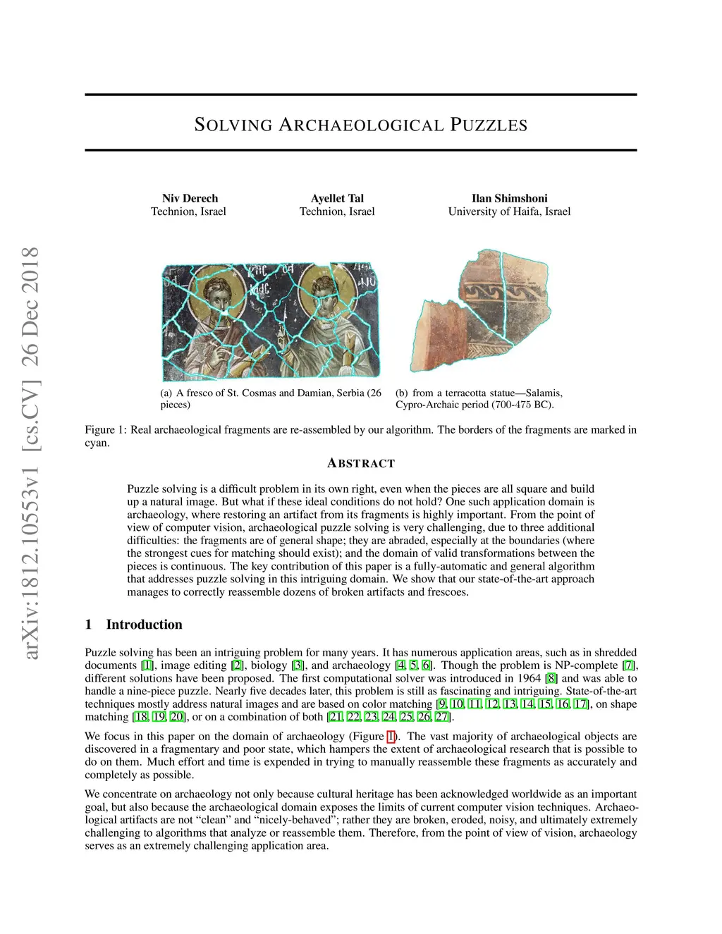 Puzzle solving is a difficult problem in its own right, even when the pieces are all square and build up a natural image. But what if these ideal conditions do not hold? One such application domain is archaeology, where restoring an artifact from its fragments is highly important. From the point of view of computer vision, archaeological puzzle solving is very challenging, due to three additional difficulties: the fragments are of general shape; they are abraded, especially at the boundaries (where the strongest cues for matching should exist); and the domain of valid transformations between the pieces is continuous. The key contribution of this paper is a fully-automatic and general algorithm that addresses puzzle solving in this intriguing domain. We show that our state-of-the-art approach manages to correctly reassemble dozens of broken artifacts and frescoes.