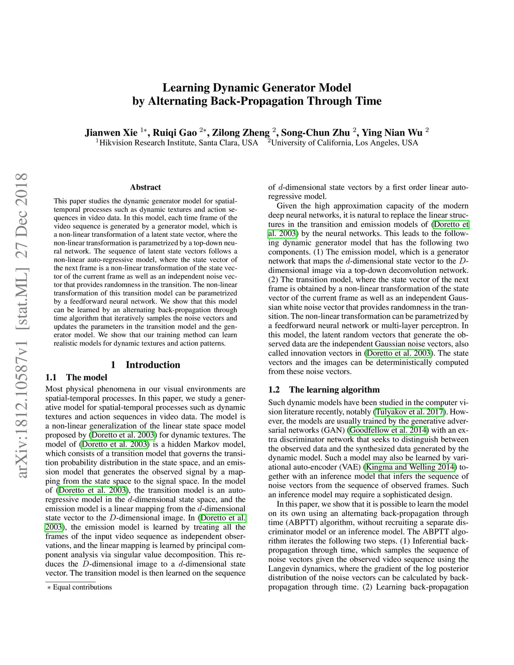 Learning Dynamic Generator Model by Alternating Back-Propagation Through