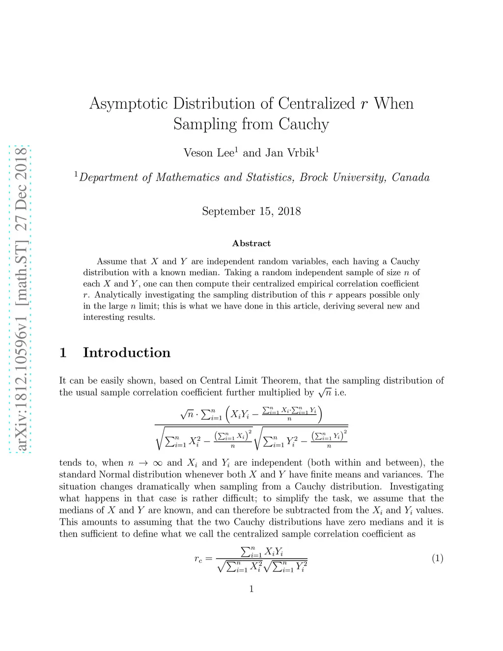 Asymptotic Distribution of Centralized When Sampling from Cauchy