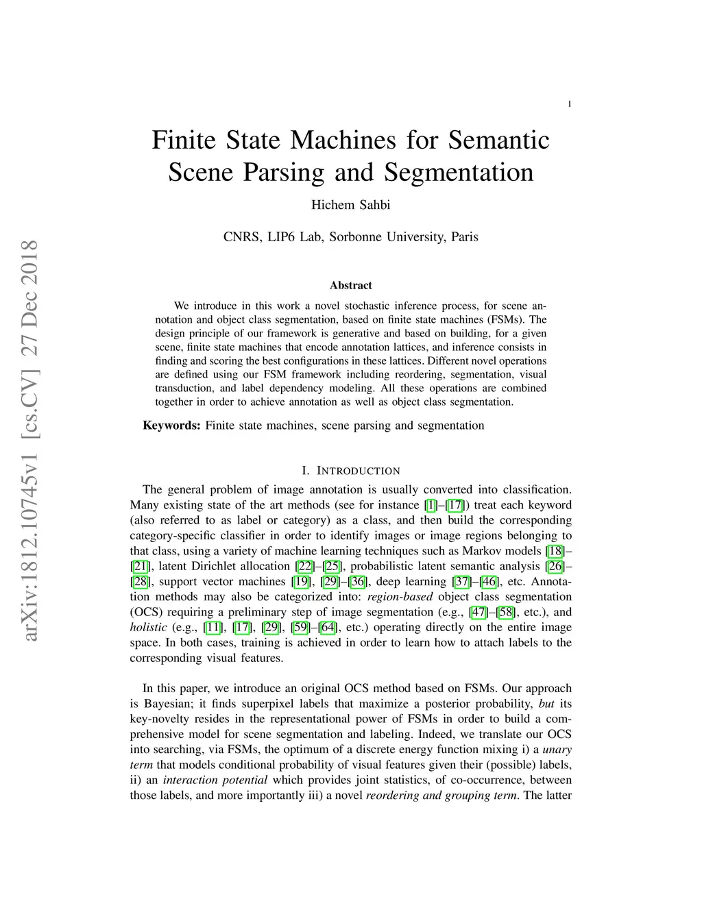 Finite State Machines for Semantic Scene Parsing and Segmentation
