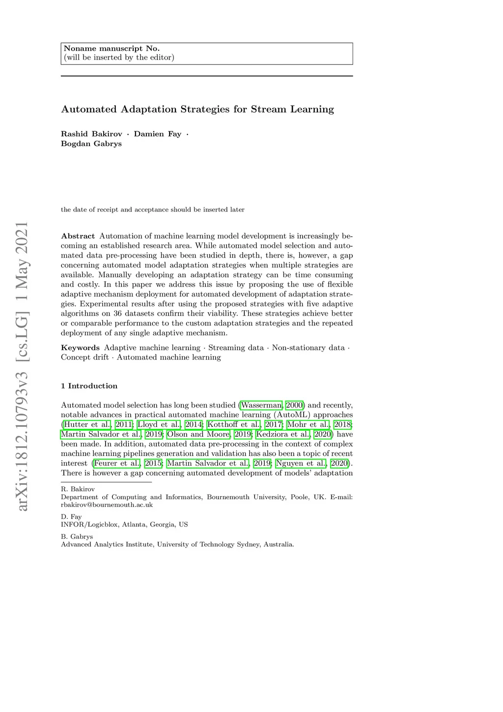 Automated Adaptation Strategies for Stream Learning