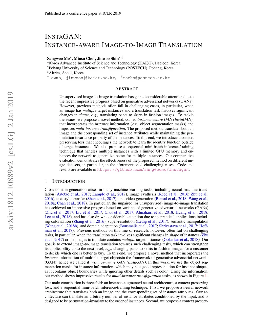 InstaGAN: Instance-aware Image-to-Image Translation