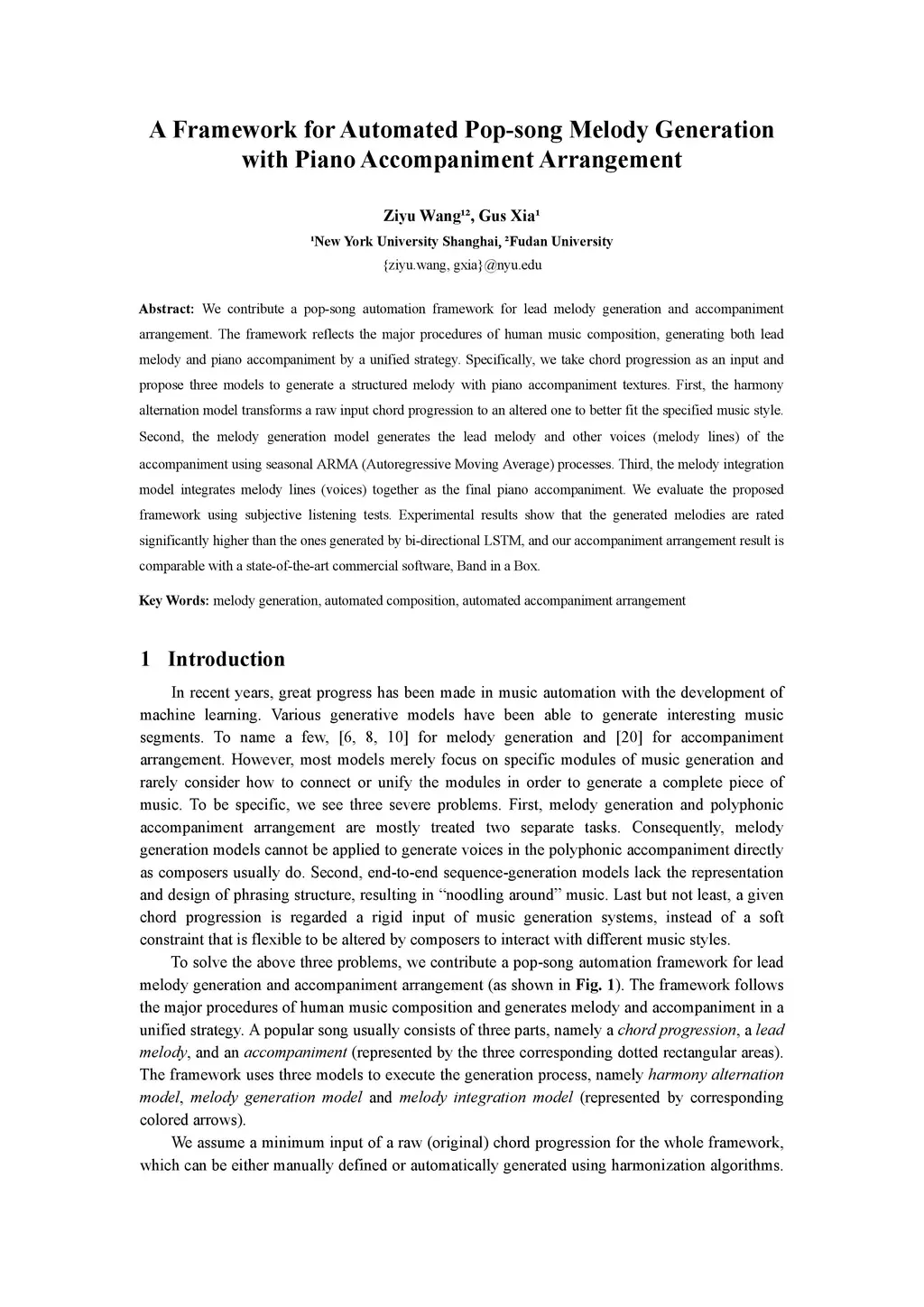 We contribute a pop-song automation framework for lead melody generation and accompaniment arrangement. The framework reflects the major procedures of human music composition, generating both lead melody and piano accompaniment by a unified strategy. Specifically, we take chord progression as an input and propose three models to generate a structured melody with piano accompaniment textures. First, the harmony alternation model transforms a raw input chord progression to an altered one to better fit the specified music style. Second, the melody generation model generates the lead melody and other voices (melody lines) of the accompaniment using seasonal ARMA (Autoregressive Moving Average) processes. Third, the melody integration model integrates melody lines (voices) together as the final piano accompaniment. We evaluate the proposed framework using subjective listening tests. Experimental results show that the generated melodies are rated significantly higher than the ones generated by bi-directional LSTM, and our accompaniment arrangement result is comparable with a state-of-the-art commercial software, Band in a Box.
