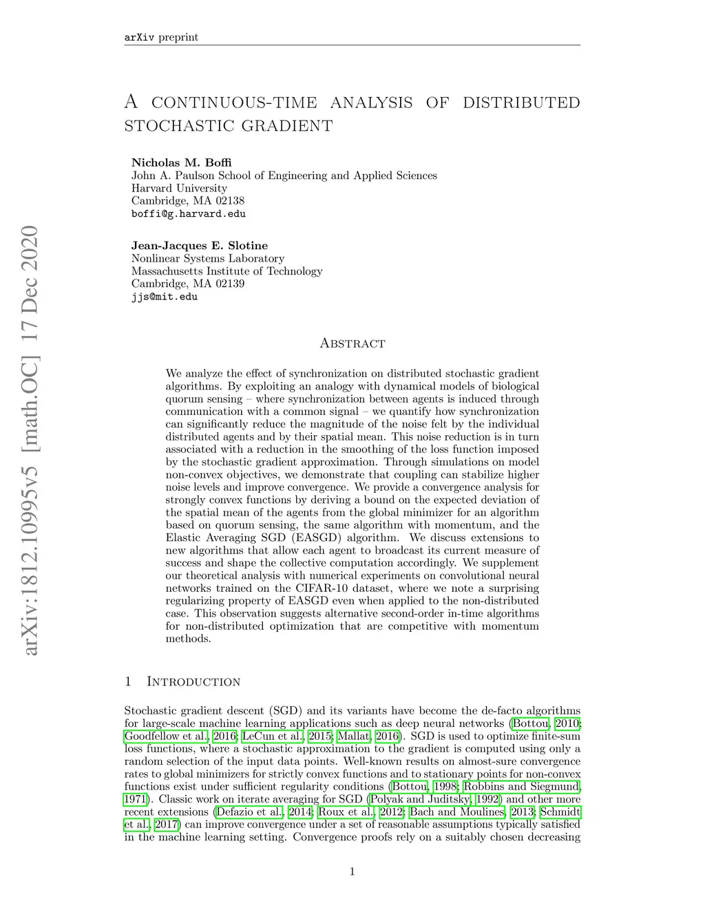 A continuous-time analysis of distributed stochastic gradient