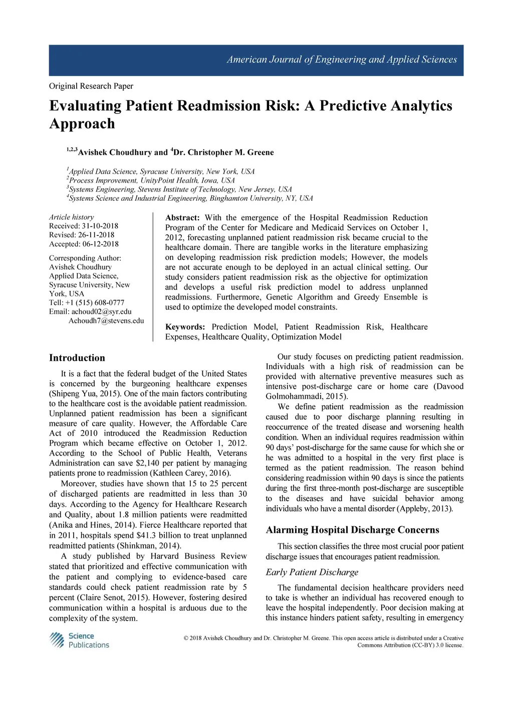 Evaluating Patient Readmission Risk: A Predictive Analytics Approach