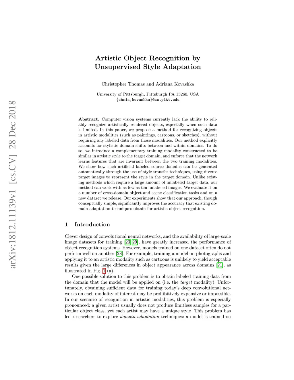 Artistic Object Recognition by Unsupervised Style Adaptation