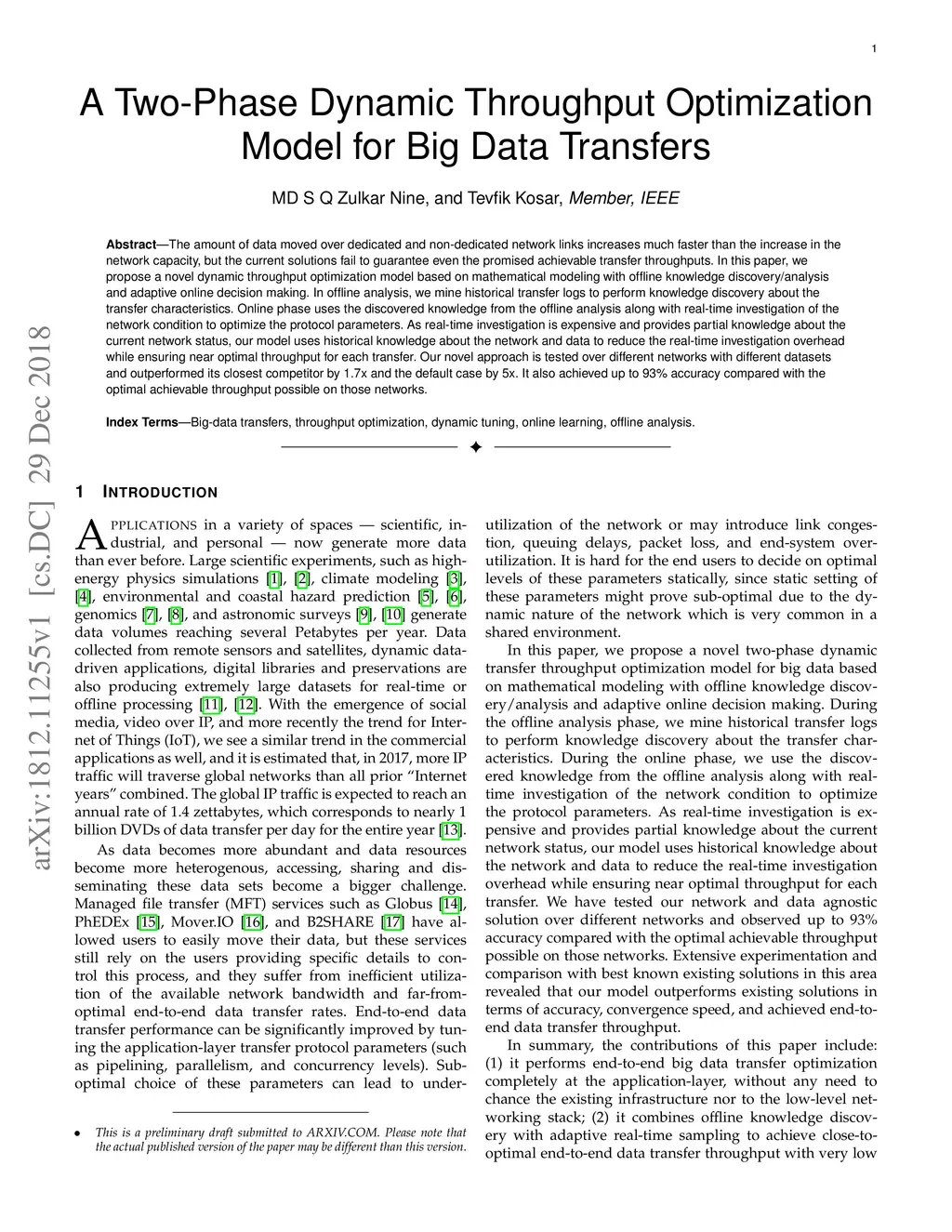 A Two-Phase Dynamic Throughput Optimization Model for Big Data Transfers