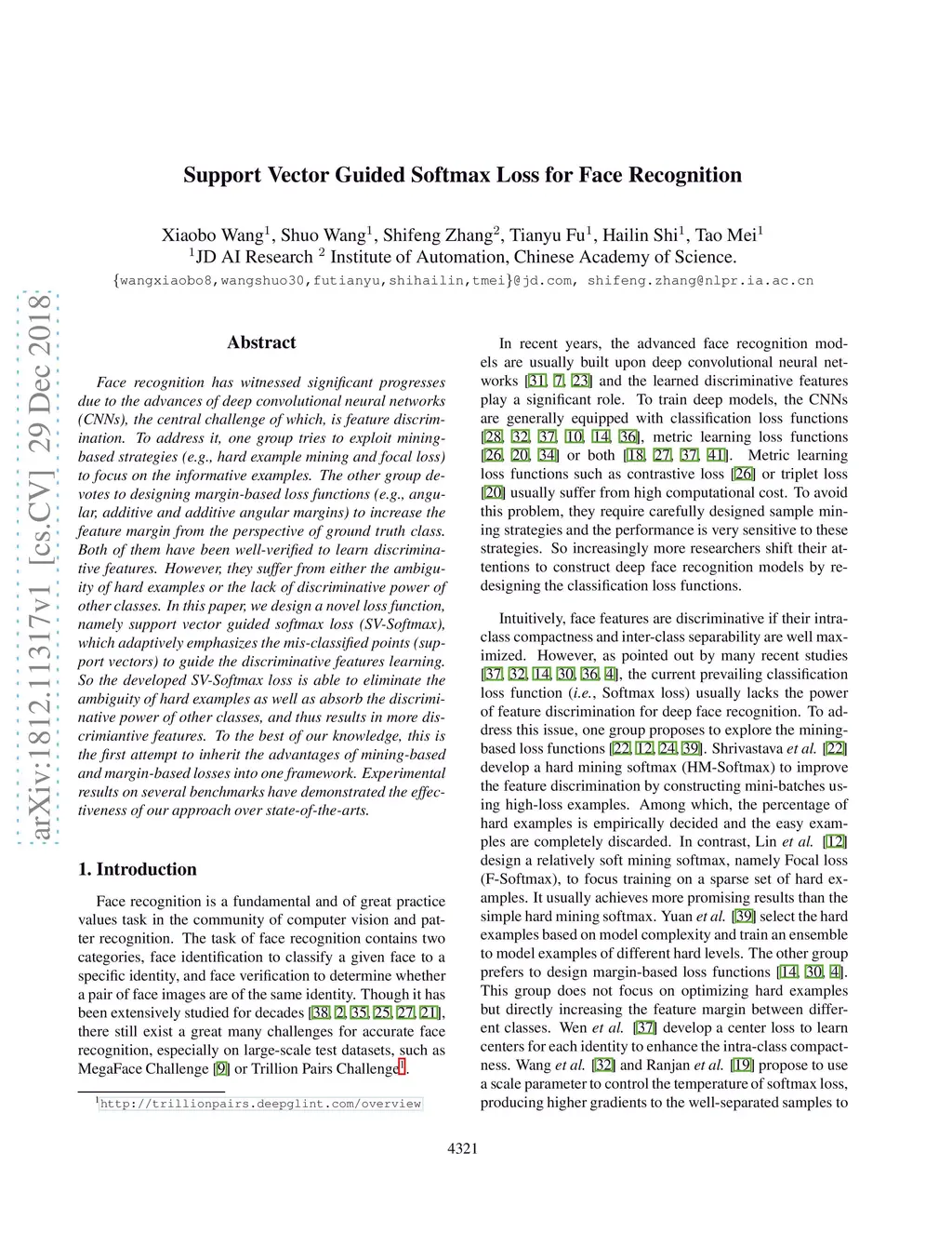 Support Vector Guided Softmax Loss for Face Recognition