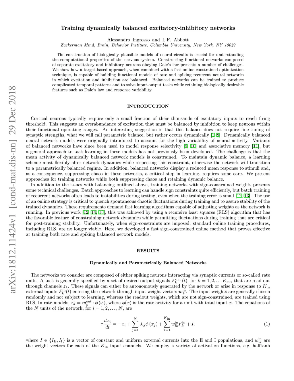 Training dynamically balanced excitatory-inhibitory networks