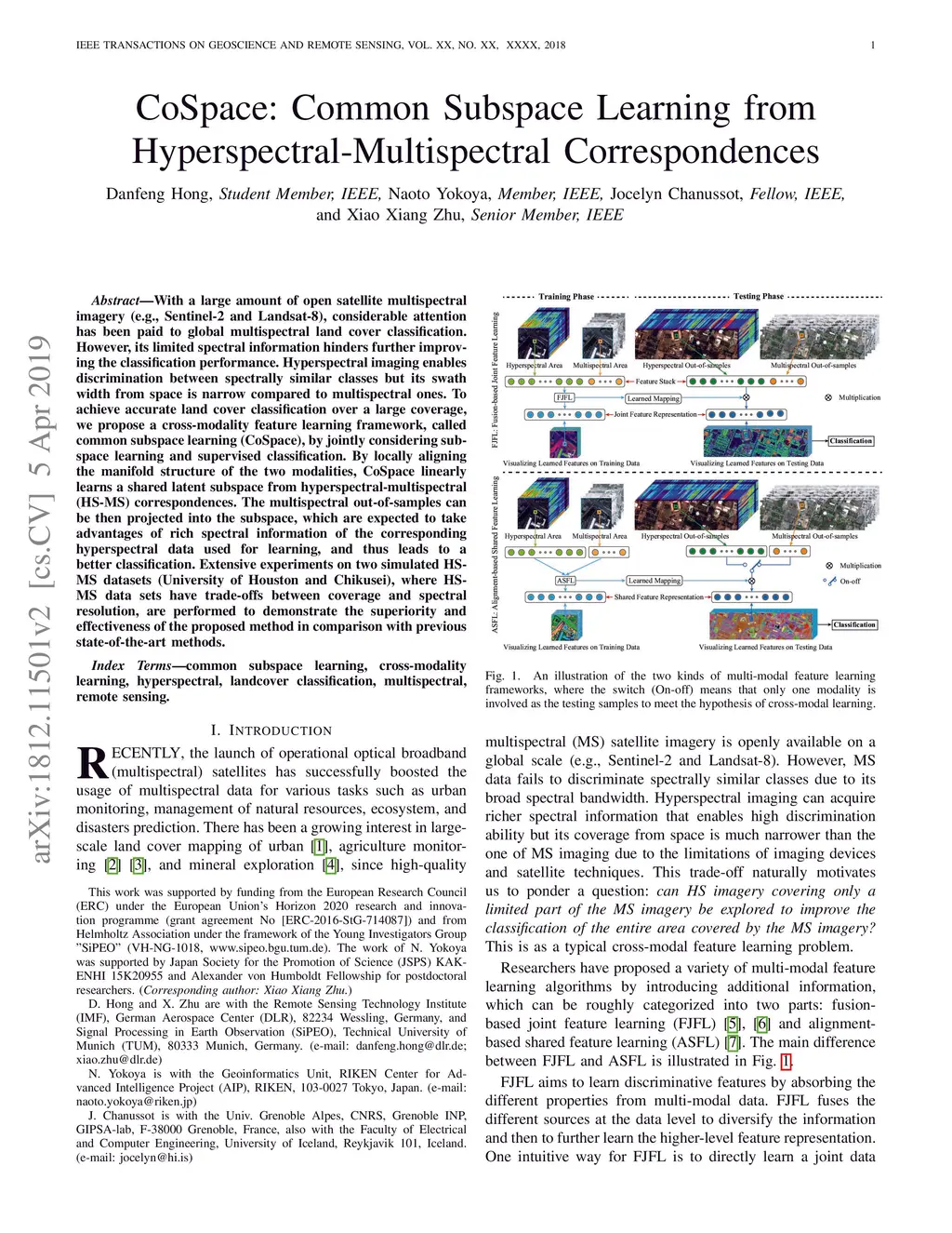 CoSpace: Common Subspace Learning from Hyperspectral-Multispectral