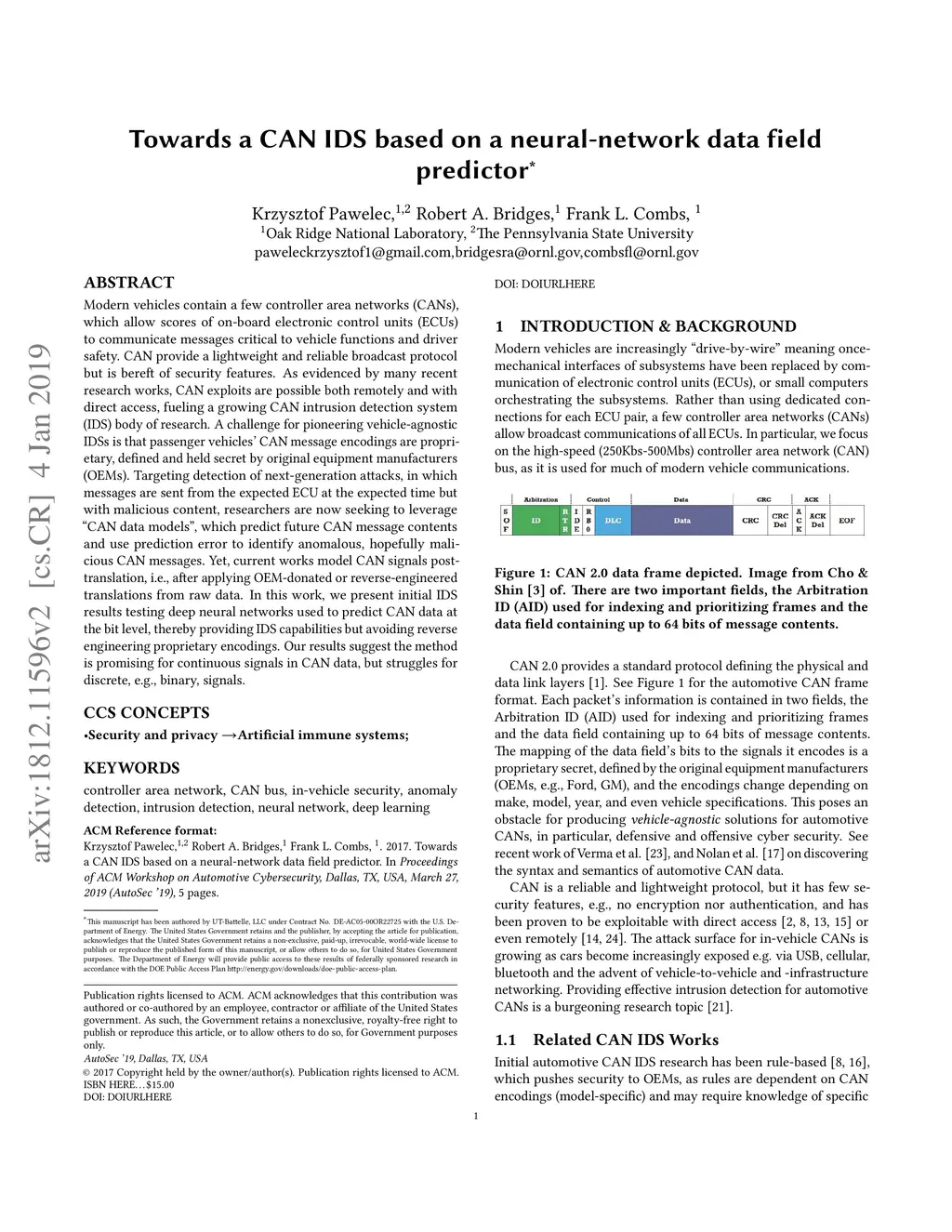 Towards a CAN IDS based on a neural-network data field predictor