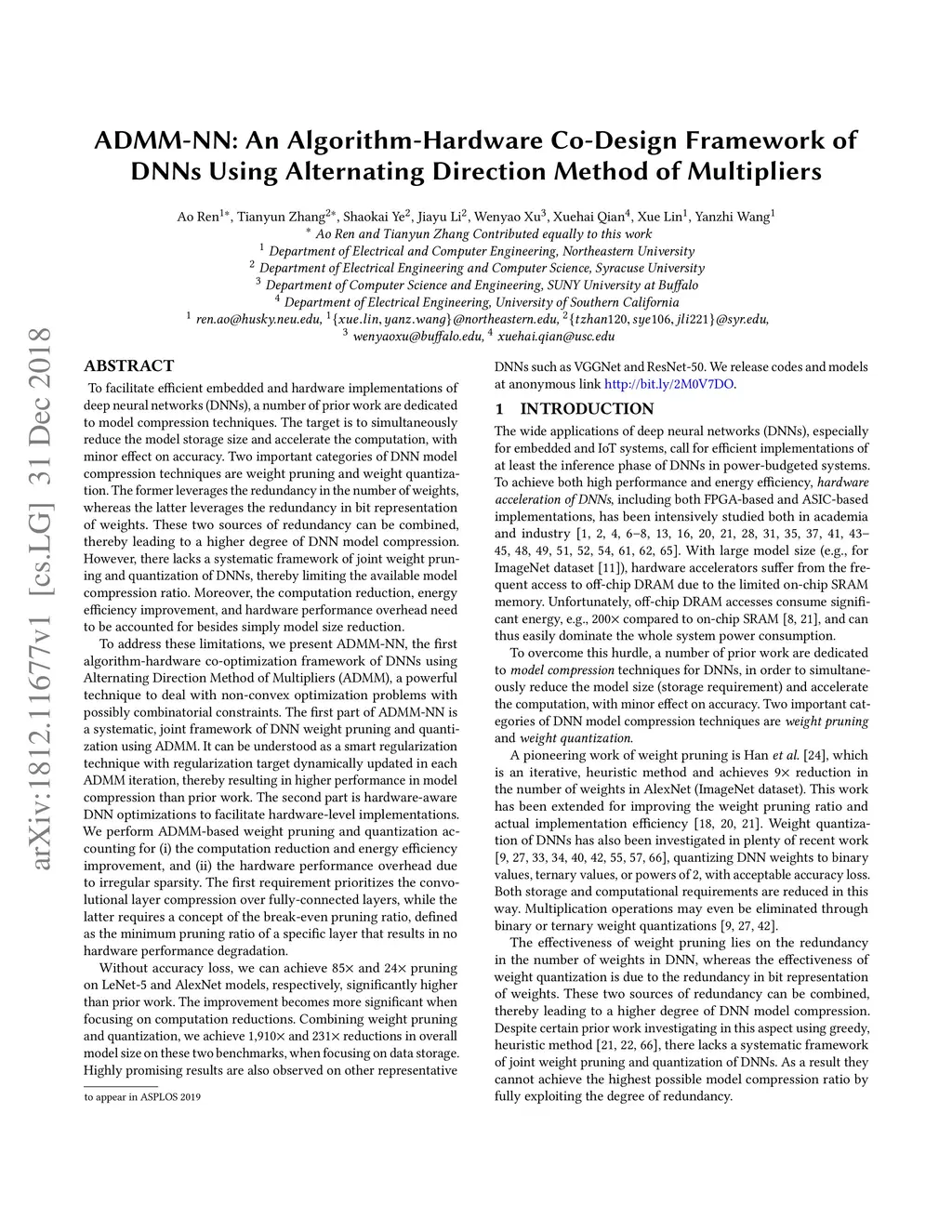 ADMM-NN: An Algorithm-Hardware Co-Design Framework of DNNs Using