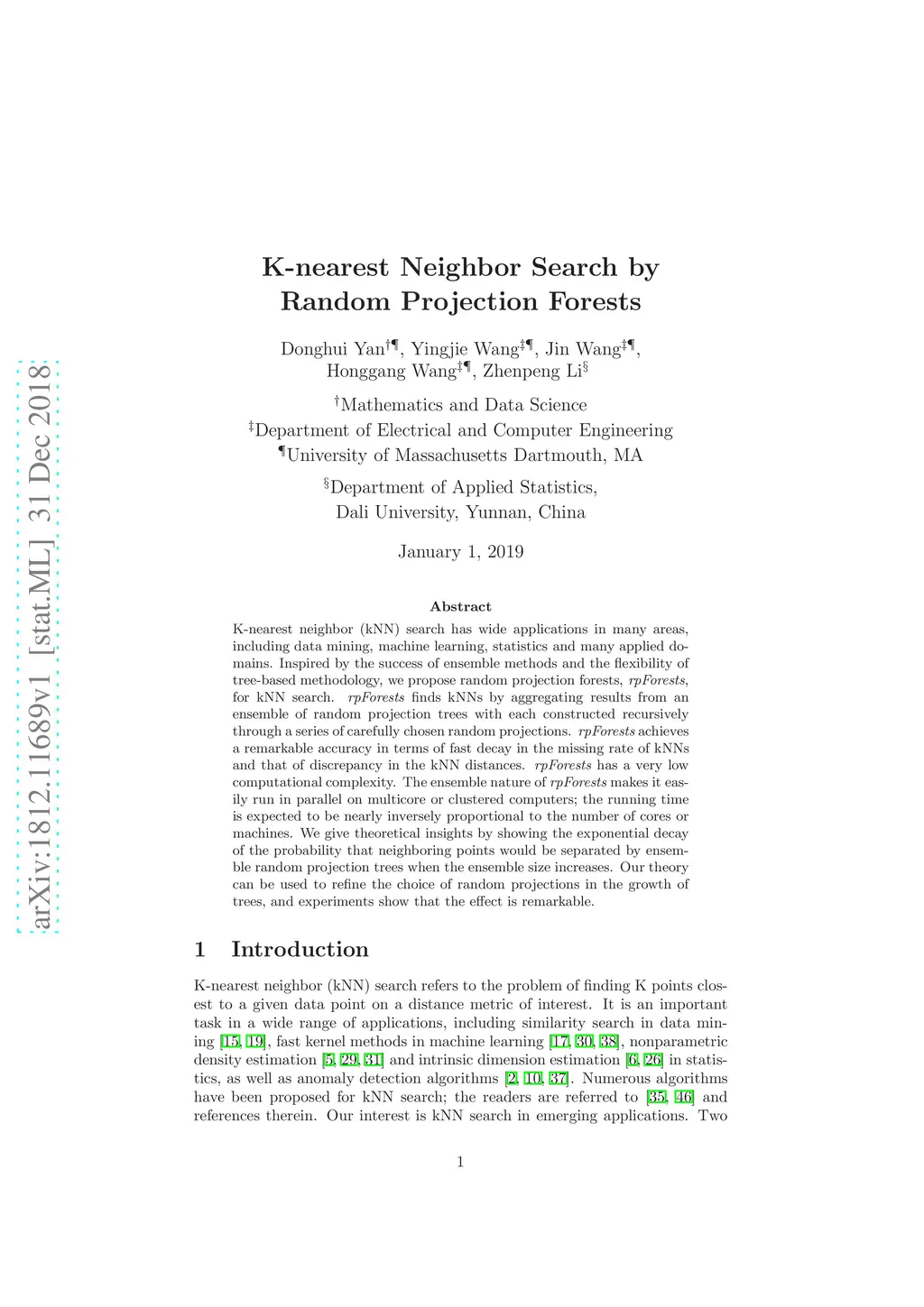 K-nearest Neighbor Search by Random Projection Forests