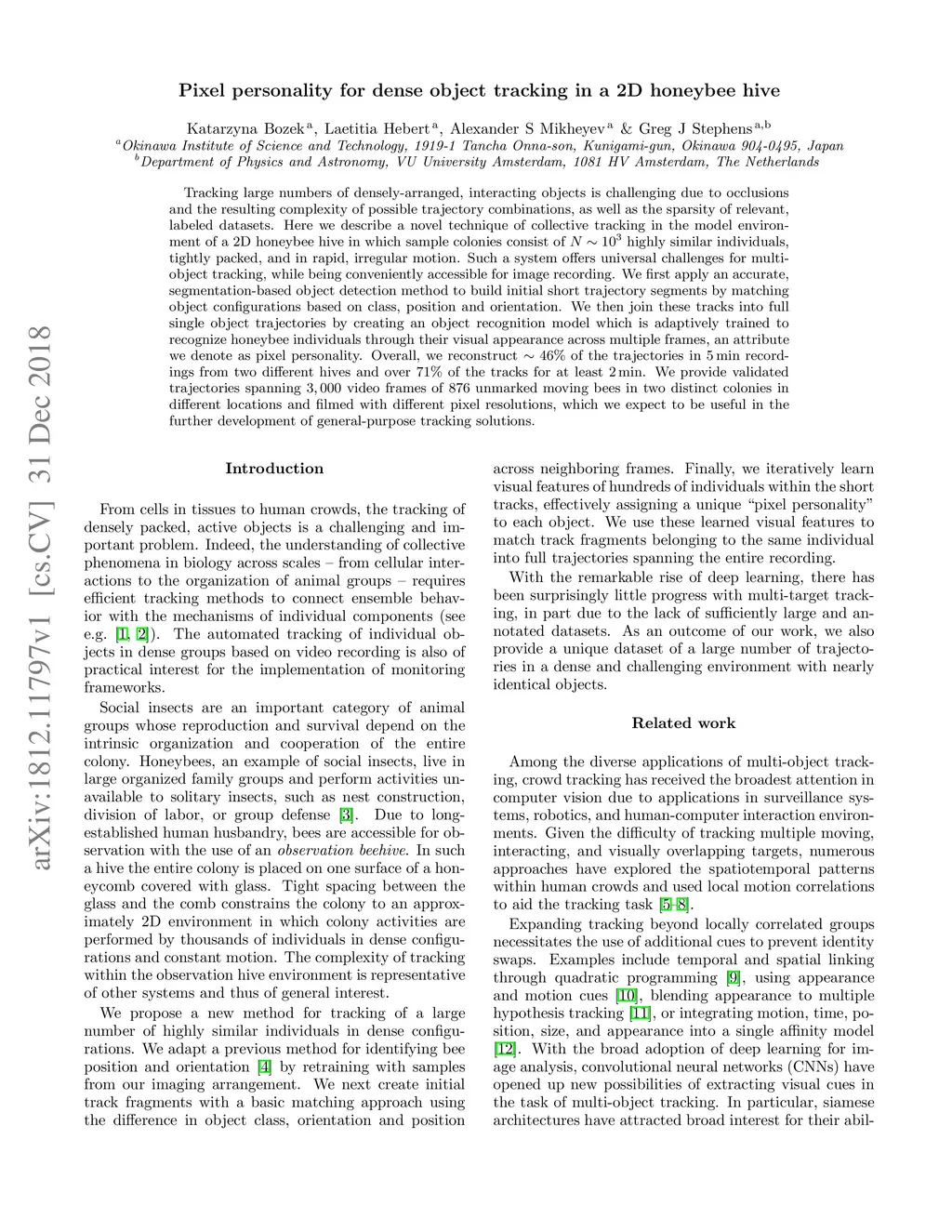 Pixel personality for dense object tracking in a 2D honeybee hive