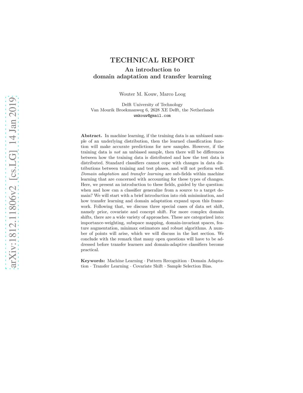 In machine learning, if the training data is an unbiased sample of an underlying distribution, then the learned classification function will make accurate predictions for new samples. However, if the training data is not an unbiased sample, then there will be differences between how the training data is distributed and how the test data is distributed. Standard classifiers cannot cope with changes in data distributions between training and test phases, and will not perform well. Domain adaptation and transfer learning are sub-fields within machine learning that are concerned with accounting for these types of changes. Here, we present an introduction to these fields, guided by the question: when and how can a classifier generalize from a source to a target domain? We will start with a brief introduction into risk minimization, and how transfer learning and domain adaptation expand upon this framework. Following that, we discuss three special cases of data set shift, namely prior, covariate and concept shift. For more complex domain shifts, there are a wide variety of approaches. These are categorized into: importance-weighting, subspace mapping, domain-invariant spaces, feature augmentation, minimax estimators and robust algorithms. A number of points will arise, which we will discuss in the last section. We conclude with the remark that many open questions will have to be addressed before transfer learners and domain-adaptive classifiers become practical.