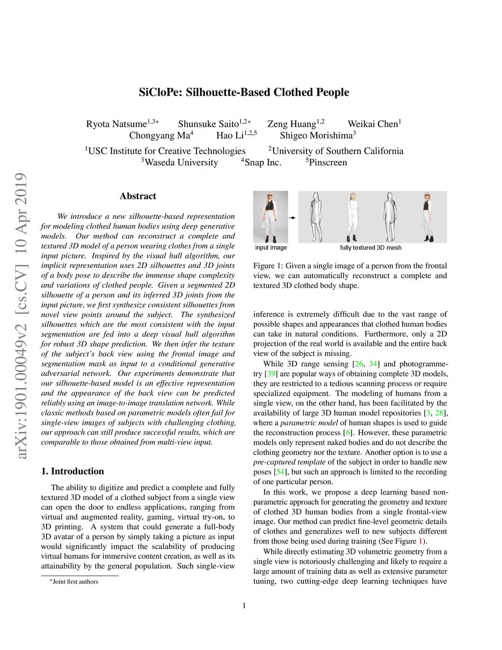 SiCloPe: Silhouette-Based Clothed People