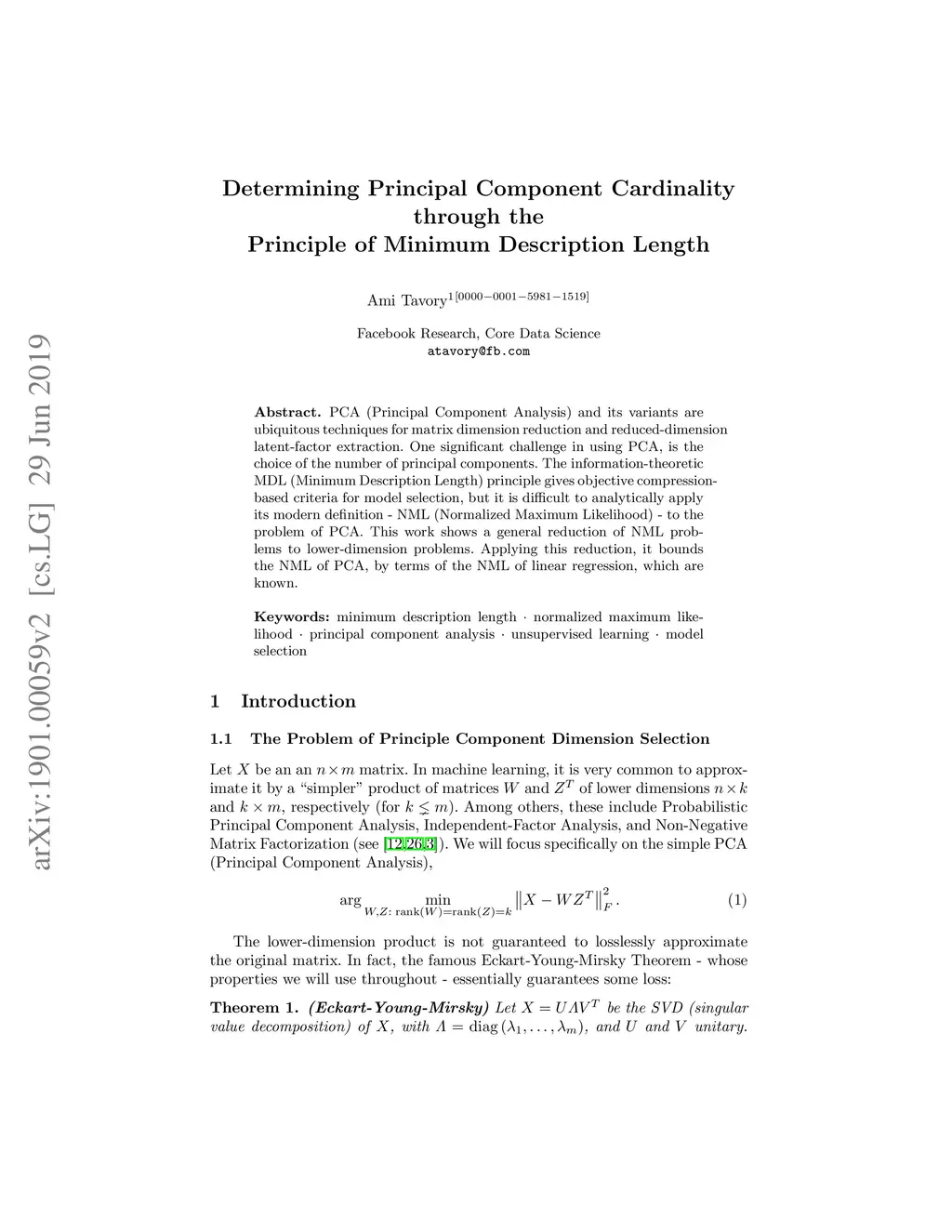Determining Principal Component Cardinality through the Principle of