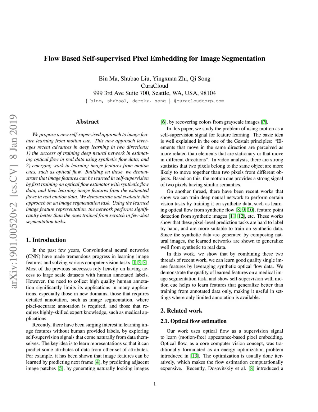 Flow Based Self-supervised Pixel Embedding for Image Segmentation