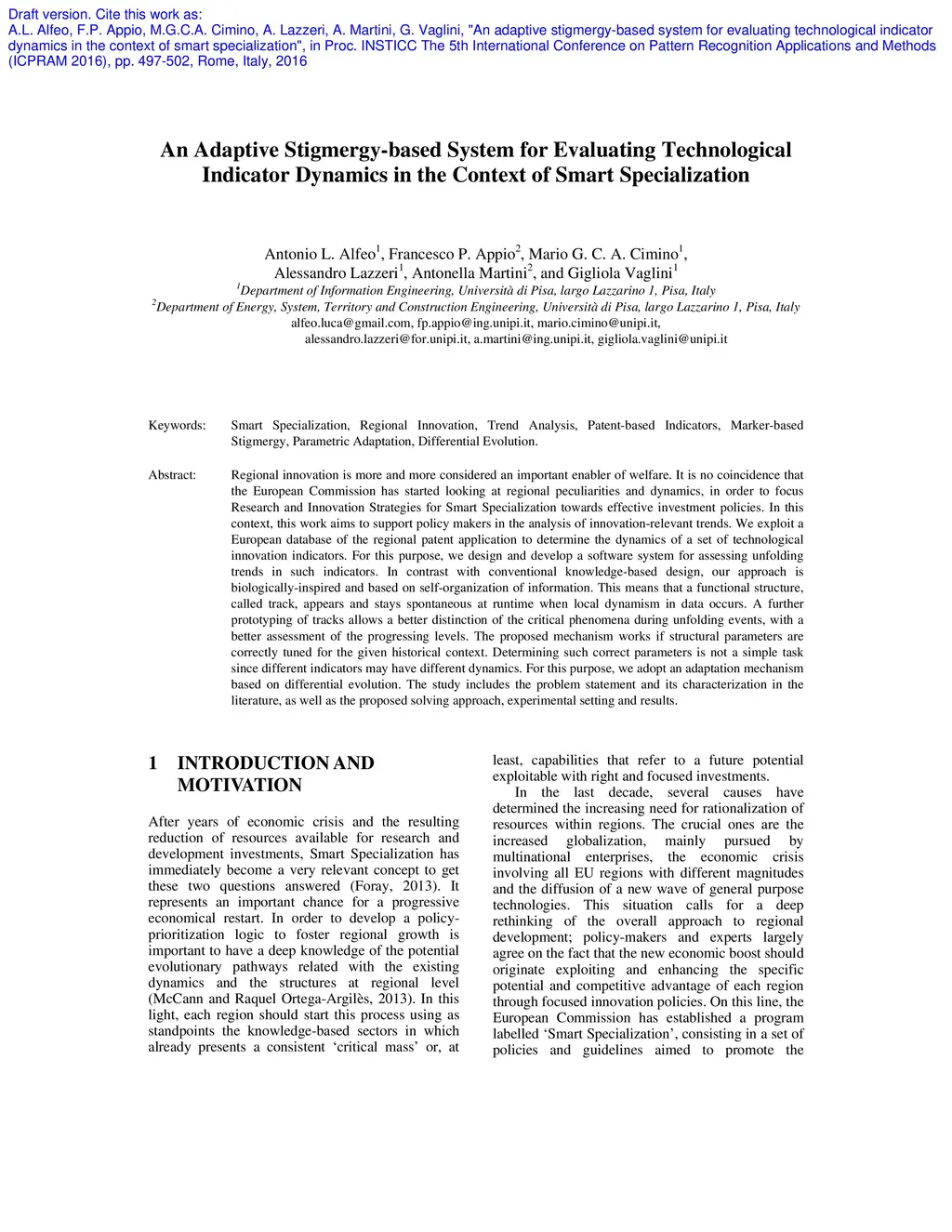 An adaptive stigmergy-based system for evaluating technological