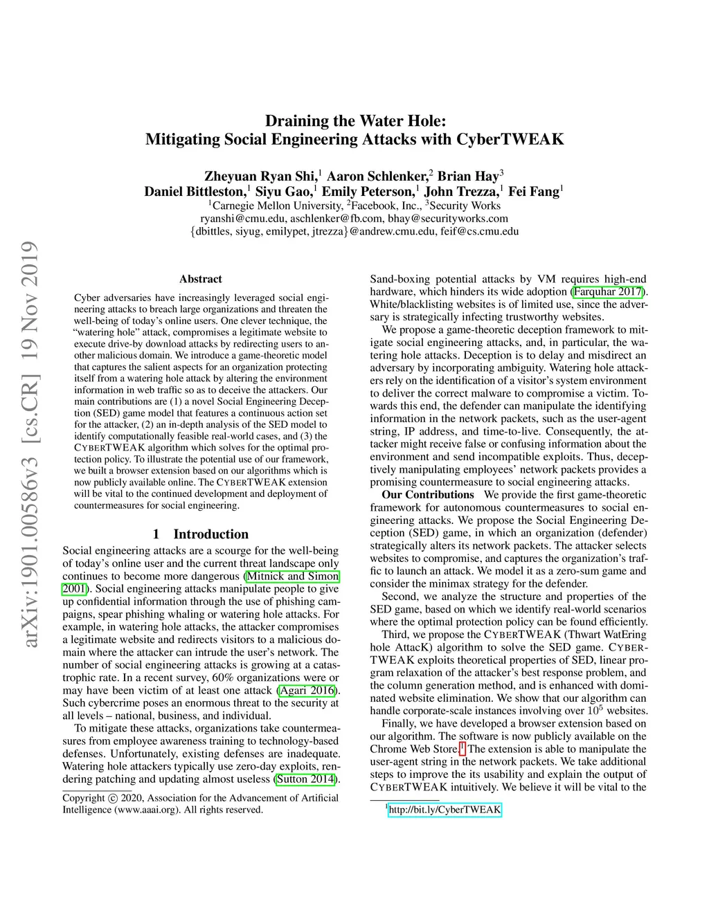 Cyber adversaries have increasingly leveraged social engineering attacks to breach large organizations and threaten the well-being of today's online users. One clever technique, the "watering hole" attack, compromises a legitimate website to execute drive-by download attacks by redirecting users to another malicious domain. We introduce a game-theoretic model that captures the salient aspects for an organization protecting itself from a watering hole attack by altering the environment information in web traffic so as to deceive the attackers. Our main contributions are (1) a novel Social Engineering Deception (SED) game model that features a continuous action set for the attacker, (2) an in-depth analysis of the SED model to identify computationally feasible real-world cases, and (3) the CyberTWEAK algorithm which solves for the optimal protection policy. To illustrate the potential use of our framework, we built a browser extension based on our algorithms which is now publicly available online. The CyberTWEAK extension will be vital to the continued development and deployment of countermeasures for social engineering.