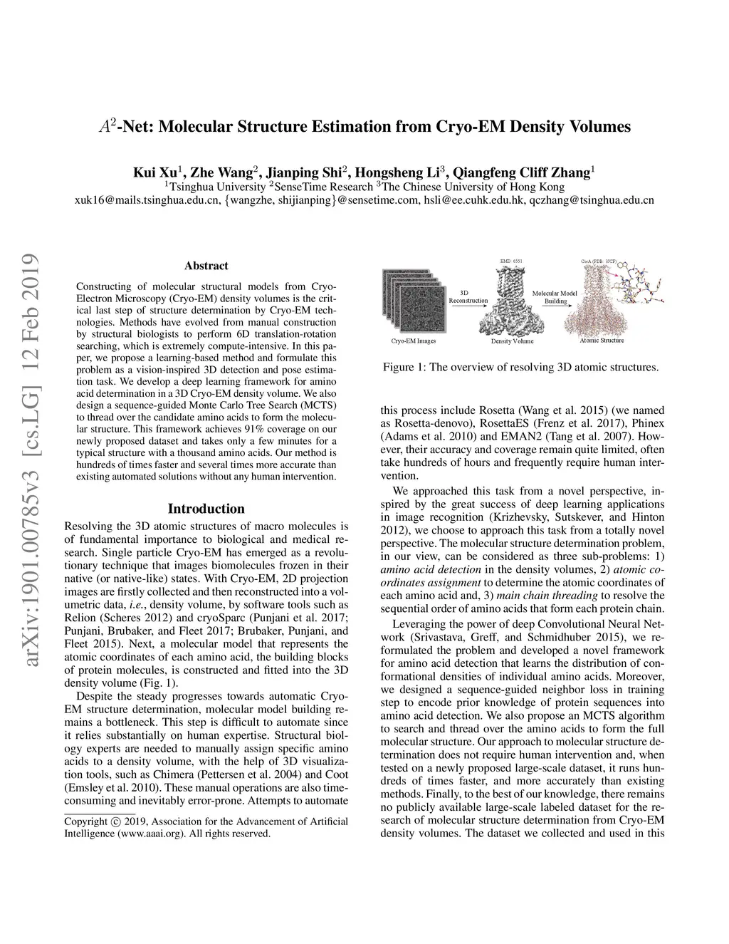 A^2-Net: Molecular Structure Estimation from Cryo-EM Density Volumes