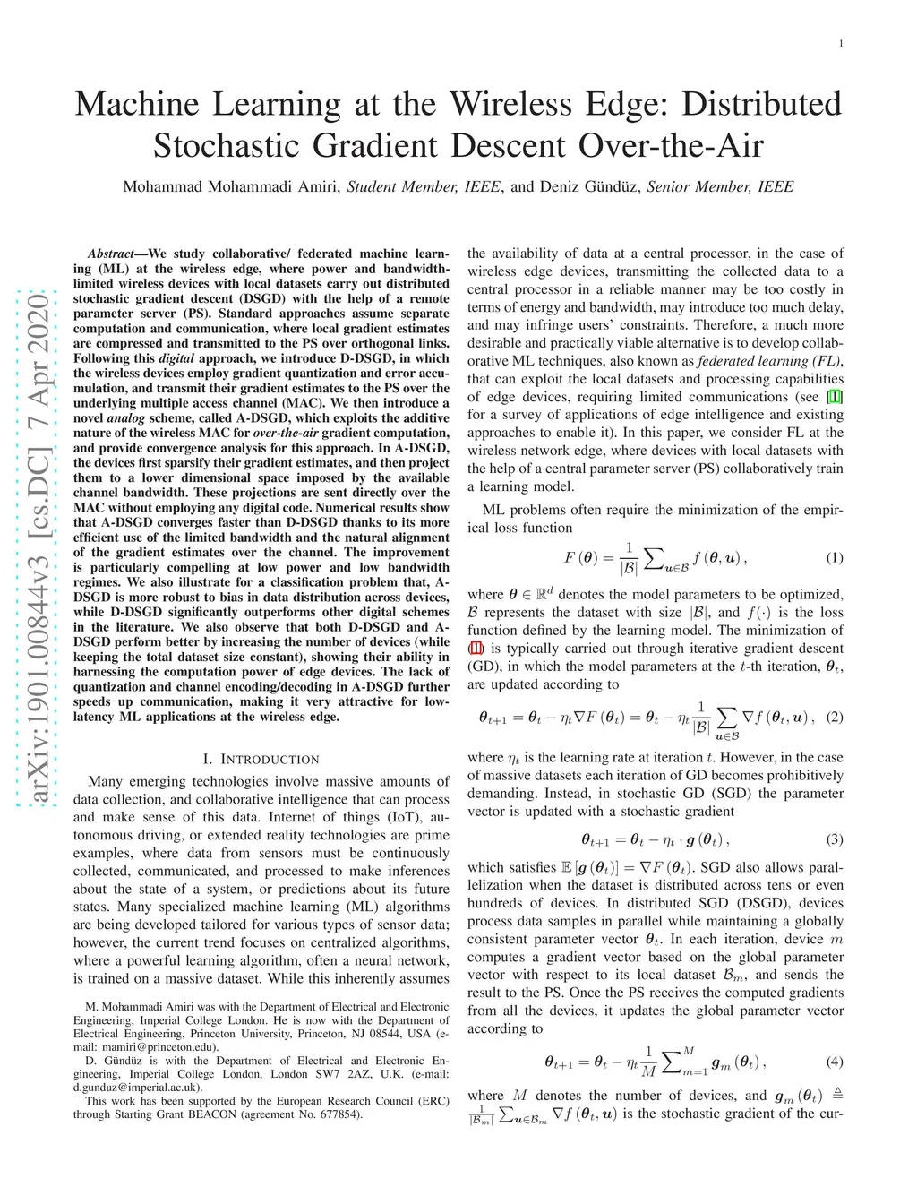 Machine Learning at the Wireless Edge: Distributed Stochastic Gradient