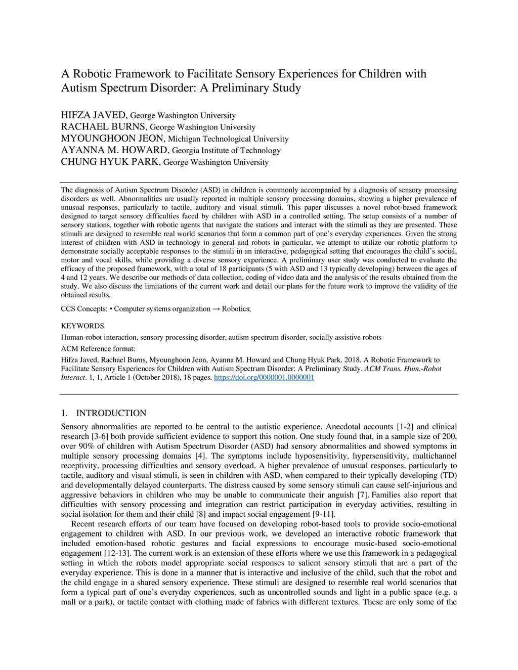 An Interactive Robotic Framework to Facilitate Sensory Experiences for