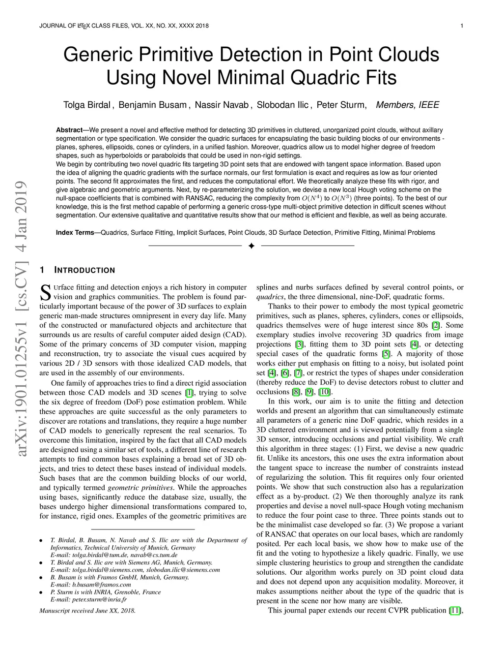 Generic Primitive Detection in Point Clouds Using Novel Minimal Quadric