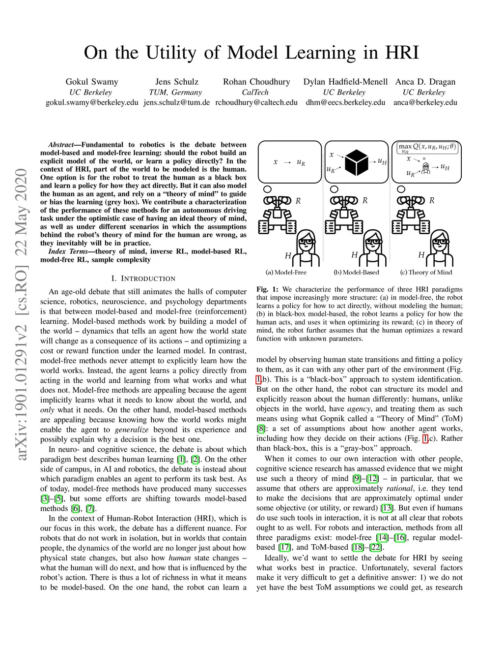 Fundamental to robotics is the debate between model-based and model-free learning: should the robot build an explicit model of the world, or learn a policy directly? In the context of HRI, part of the world to be modeled is the human. One option is for the robot to treat the human as a black box and learn a policy for how they act directly. But it can also model the human as an agent, and rely on a "theory of mind" to guide or bias the learning (grey box). We contribute a characterization of the performance of these methods for an autonomous driving task under the optimistic case of having an ideal theory of mind, as well as under different scenarios in which the assumptions behind the robot's theory of mind for the human are wrong, as they inevitably will be in practice.