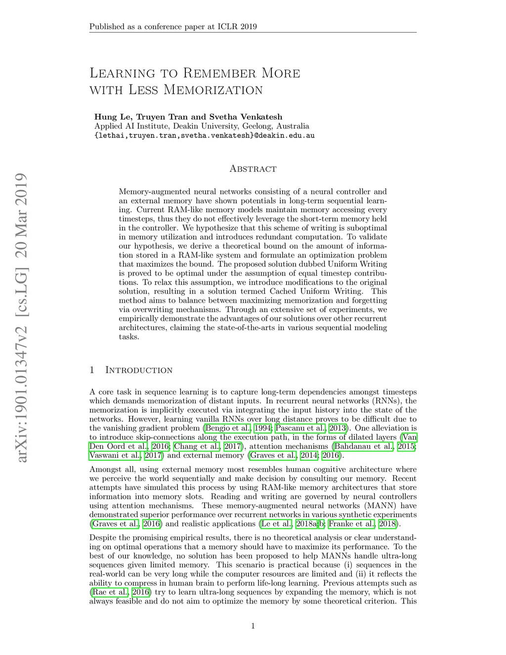 Learning to Remember More with Less Memorization