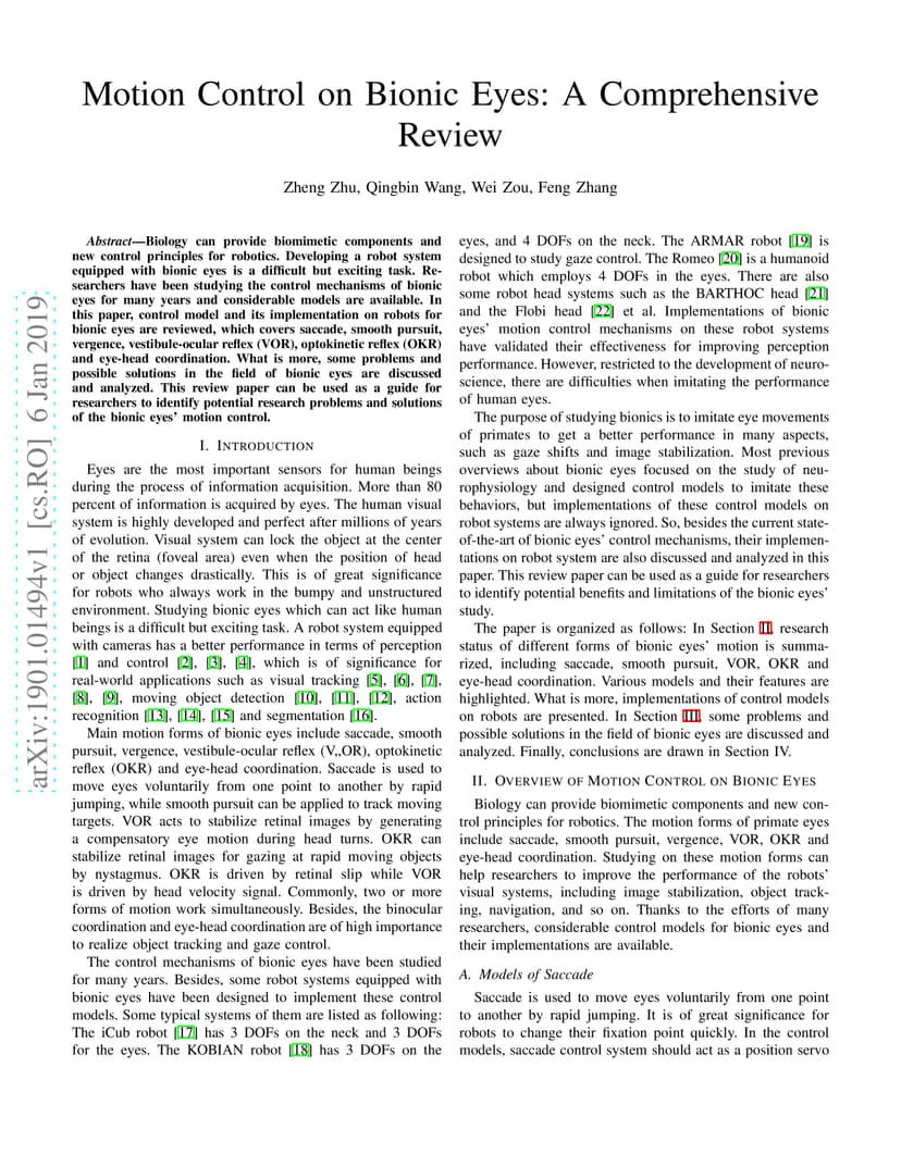 Motion Control on Bionic Eyes: A Comprehensive Review