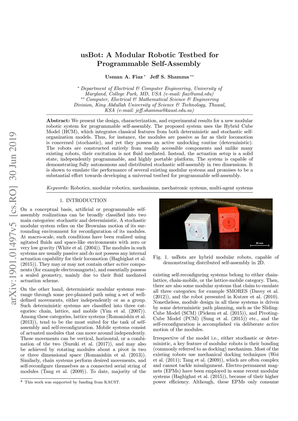 usBot: A Modular Robotic Testbed for Programmable Self-Assembly