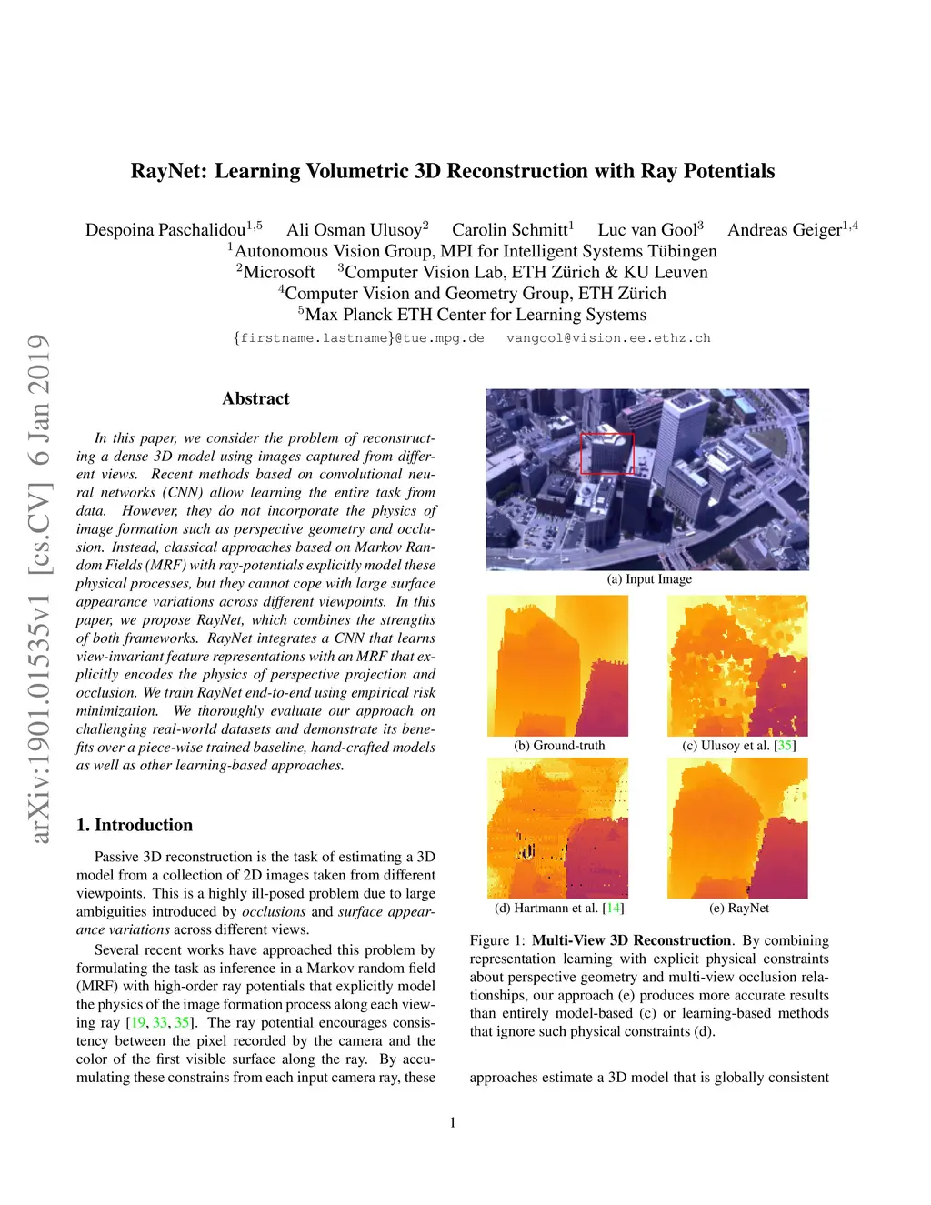 RayNet: Learning Volumetric 3D Reconstruction with Ray Potentials