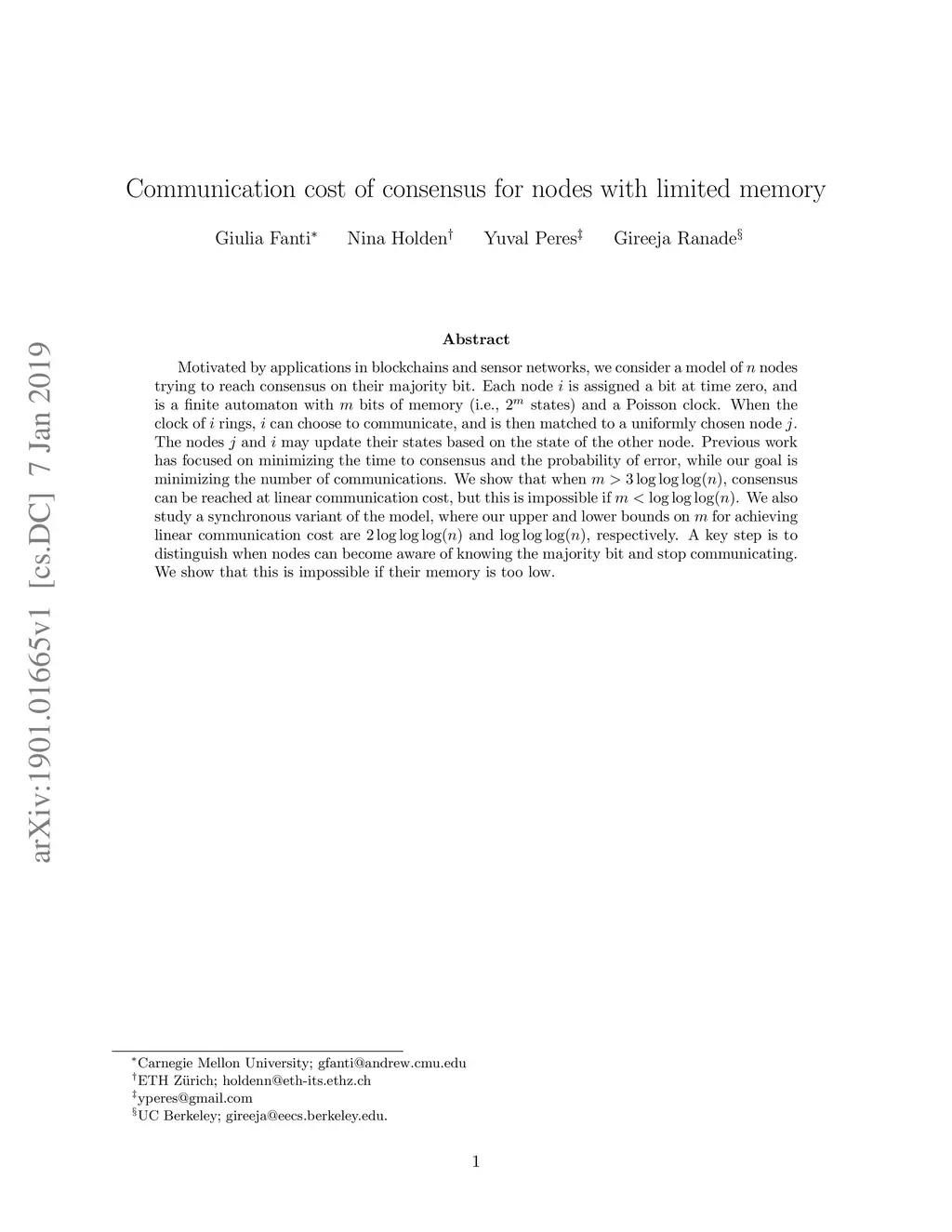 Communication cost of consensus for nodes with limited memory