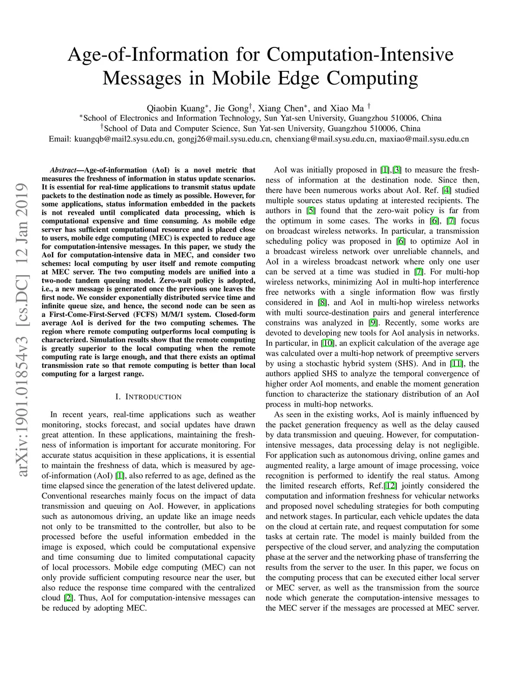 Age-of-Information for Computation-Intensive Messages in Mobile Edge