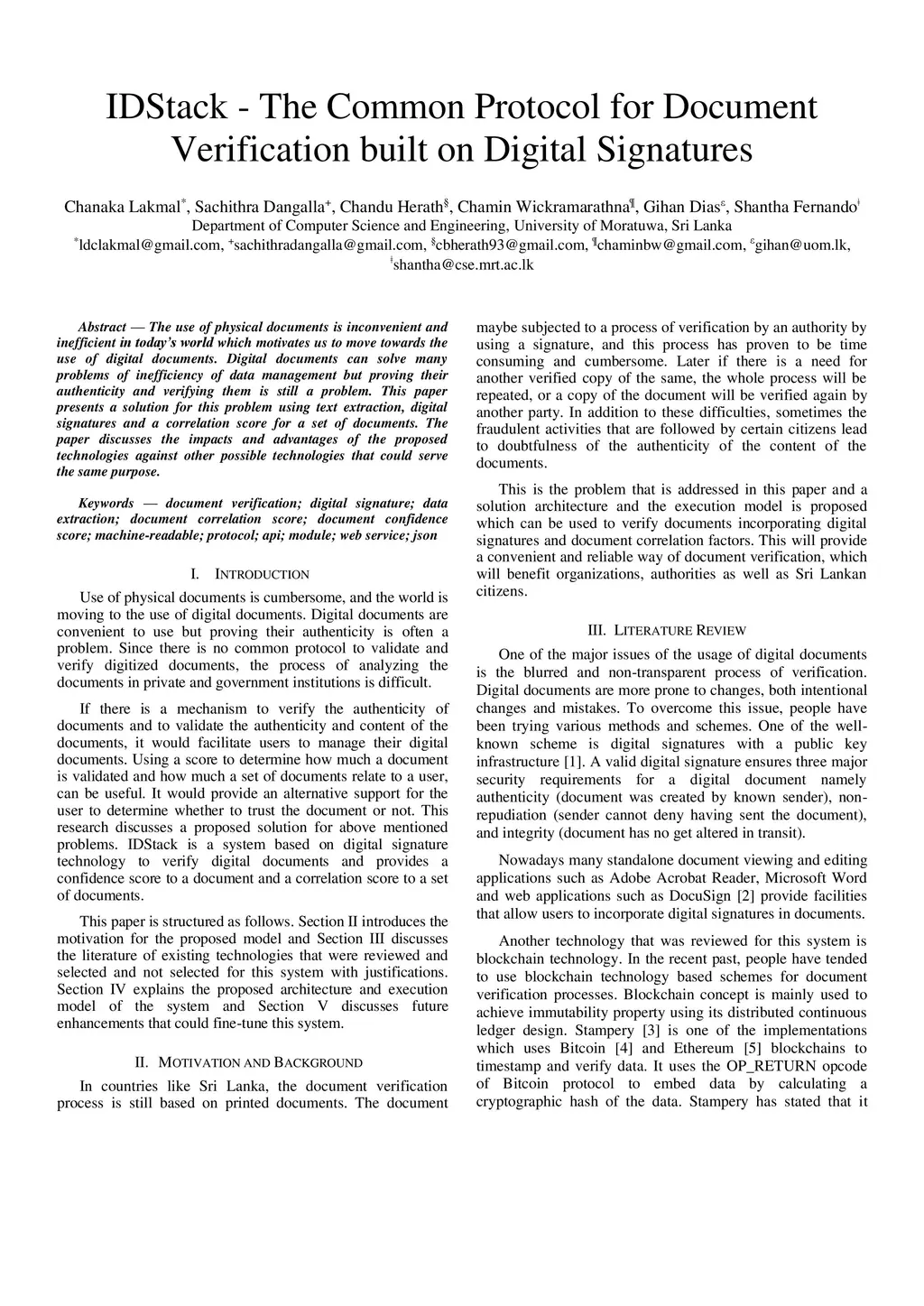 IDStack -- The Common Protocol for Document Verification built on Digital Signatures