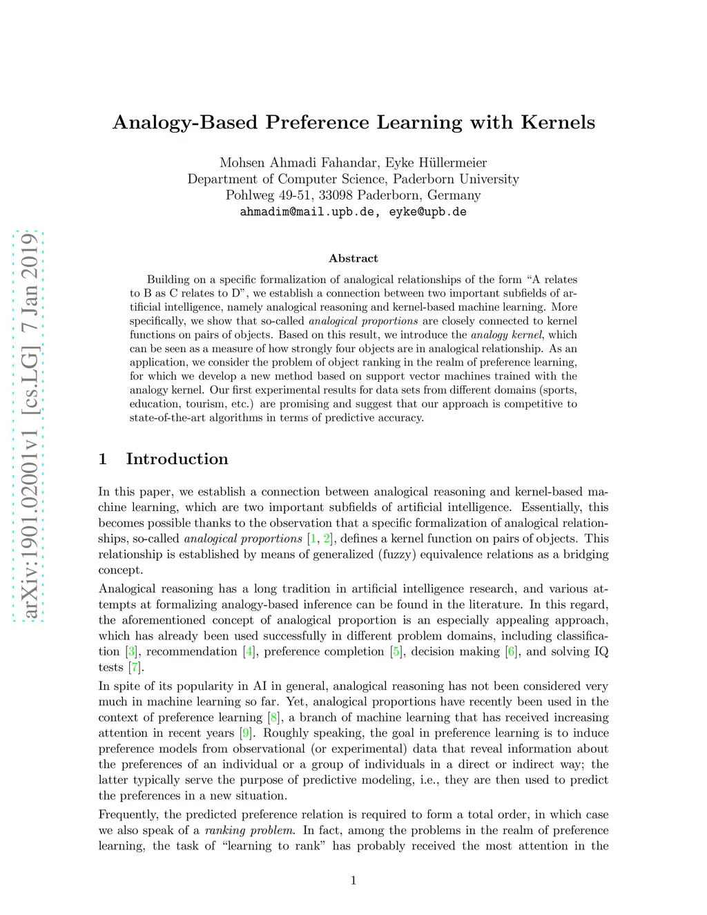 Analogy-Based Preference Learning with Kernels