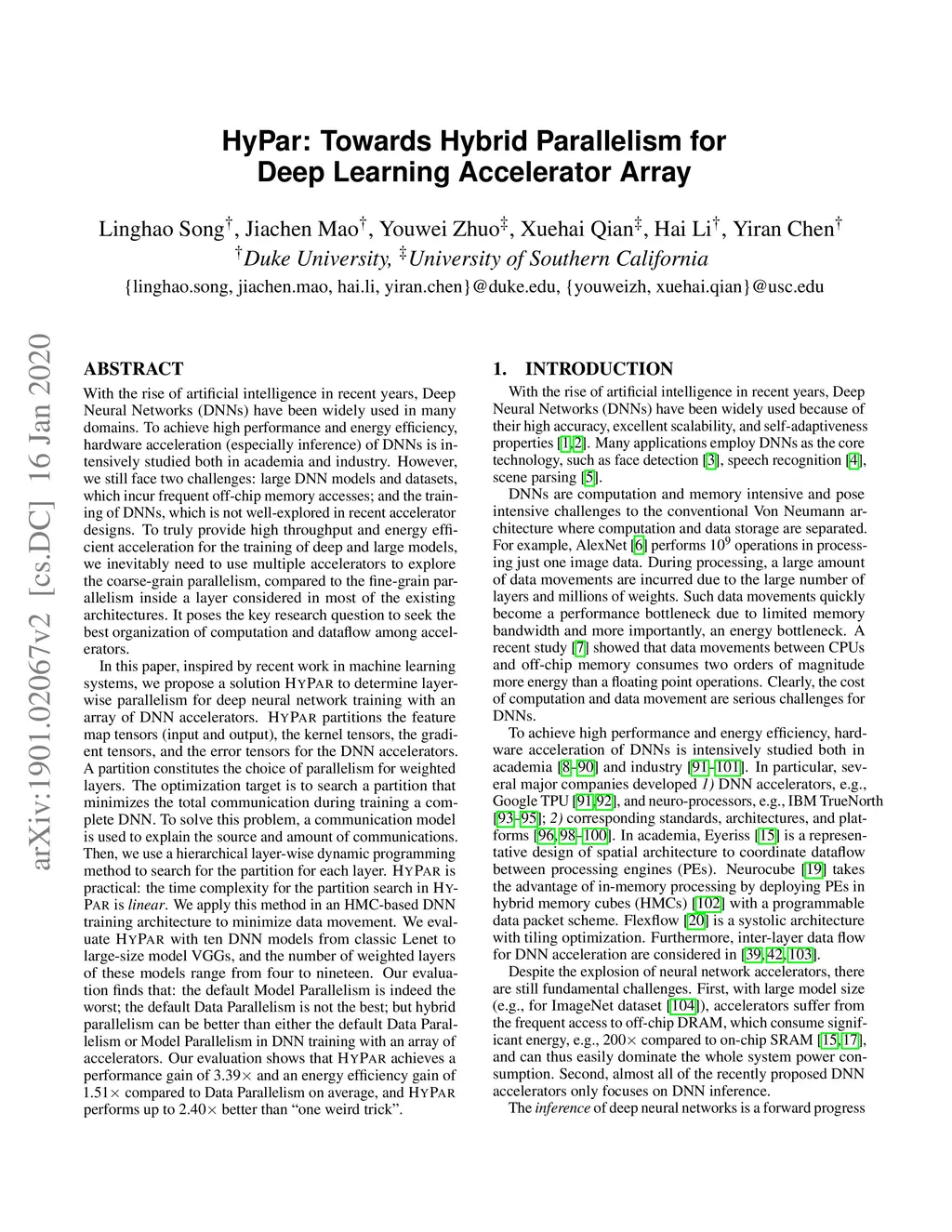 HyPar: Towards Hybrid Parallelism for Deep Learning Accelerator Array