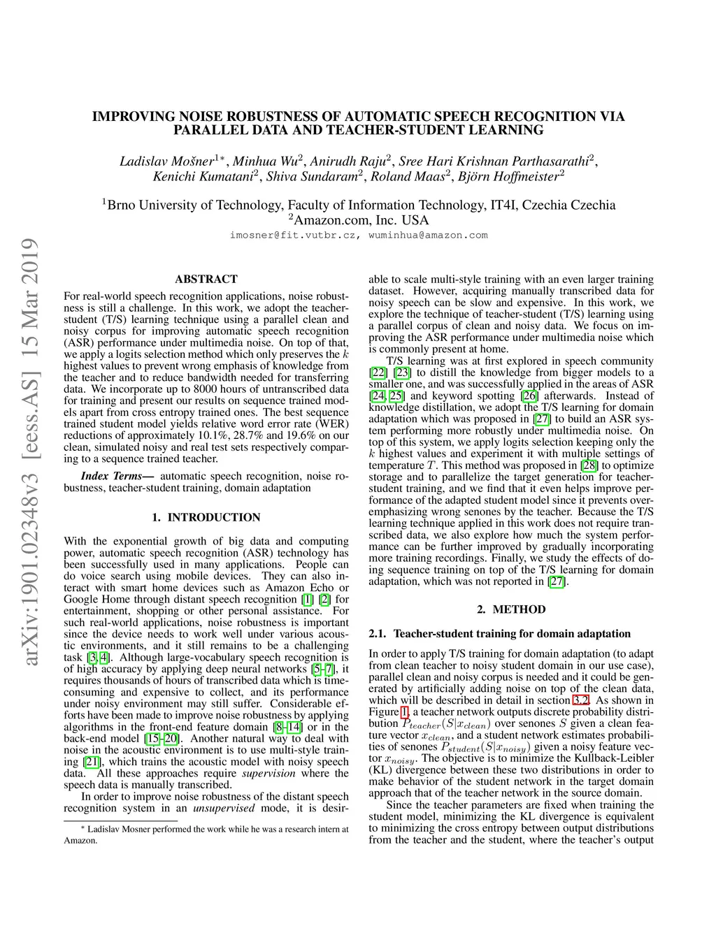 Improving noise robustness of automatic speech recognition via parallel