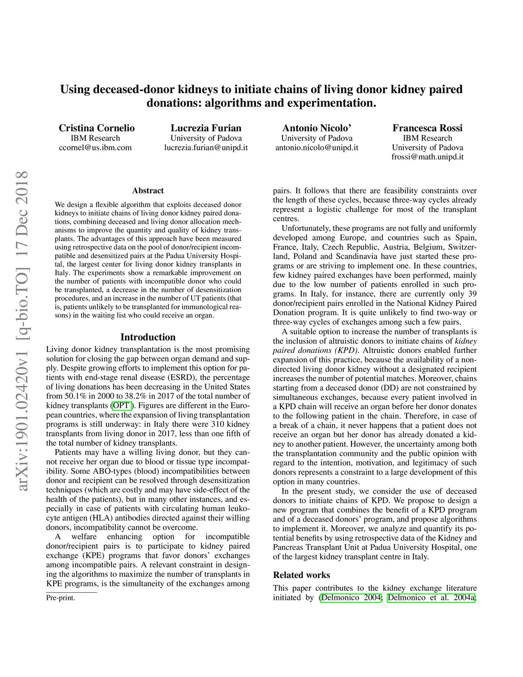 We design a flexible algorithm that exploits deceased donor kidneys to initiate chains of living donor kidney paired donations, combining deceased and living donor allocation mechanisms to improve the quantity and quality of kidney transplants. The advantages of this approach have been measured using retrospective data on the pool of donor/recipient incompatible and desensitized pairs at the Padua University Hospital, the largest center for living donor kidney transplants in Italy. The experiments show a remarkable improvement on the number of patients with incompatible donor who could be transplanted, a decrease in the number of desensitization procedures, and an increase in the number of UT patients (that is, patients unlikely to be transplanted for immunological reasons) in the waiting list who could receive an organ.